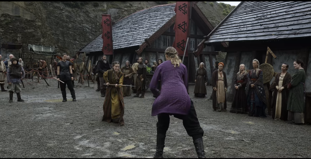 바이킹스:발할라(시즌2) 3회 / 난만 바이킹 흐레프나에게 무술을 가르치는 프레이디스 / 출처 : 넷플릭스