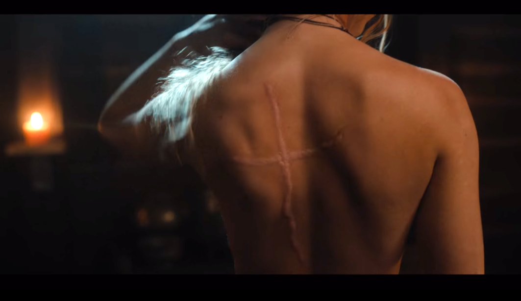 바이킹스 : 발할라 시즌1 / 자신의 등뒤에 새겨진 십자가를 보여주는 프래이디스 / 출처 : 넷플릭스
